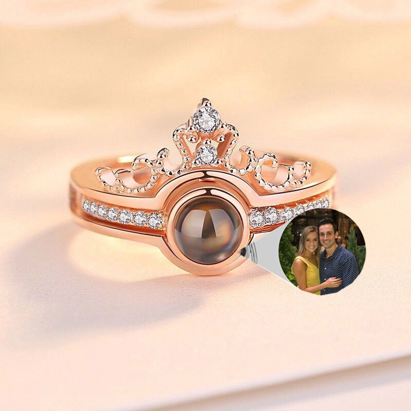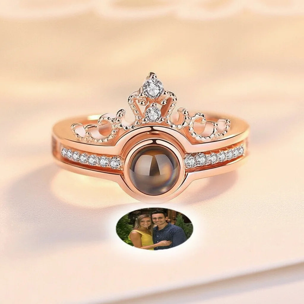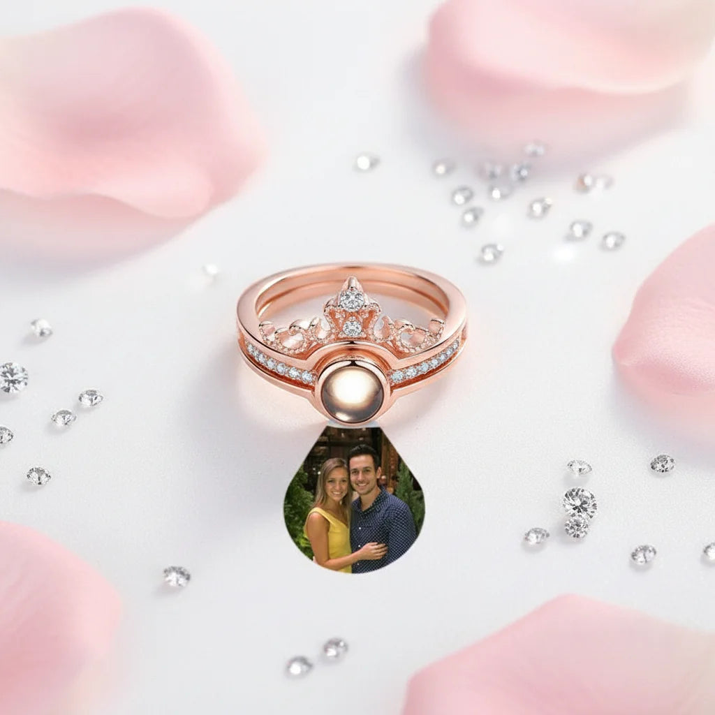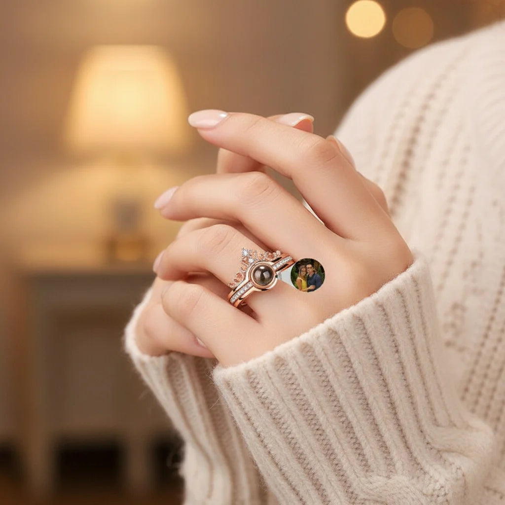 Our MemoryGlow Ring features a luxurious rose gold finish, crafted with durable materials and adorned with sparkling, high-quality stones. The central projection stone is specially designed for optimal image clarity, ensuring your memories are beautifully preserved and presented.